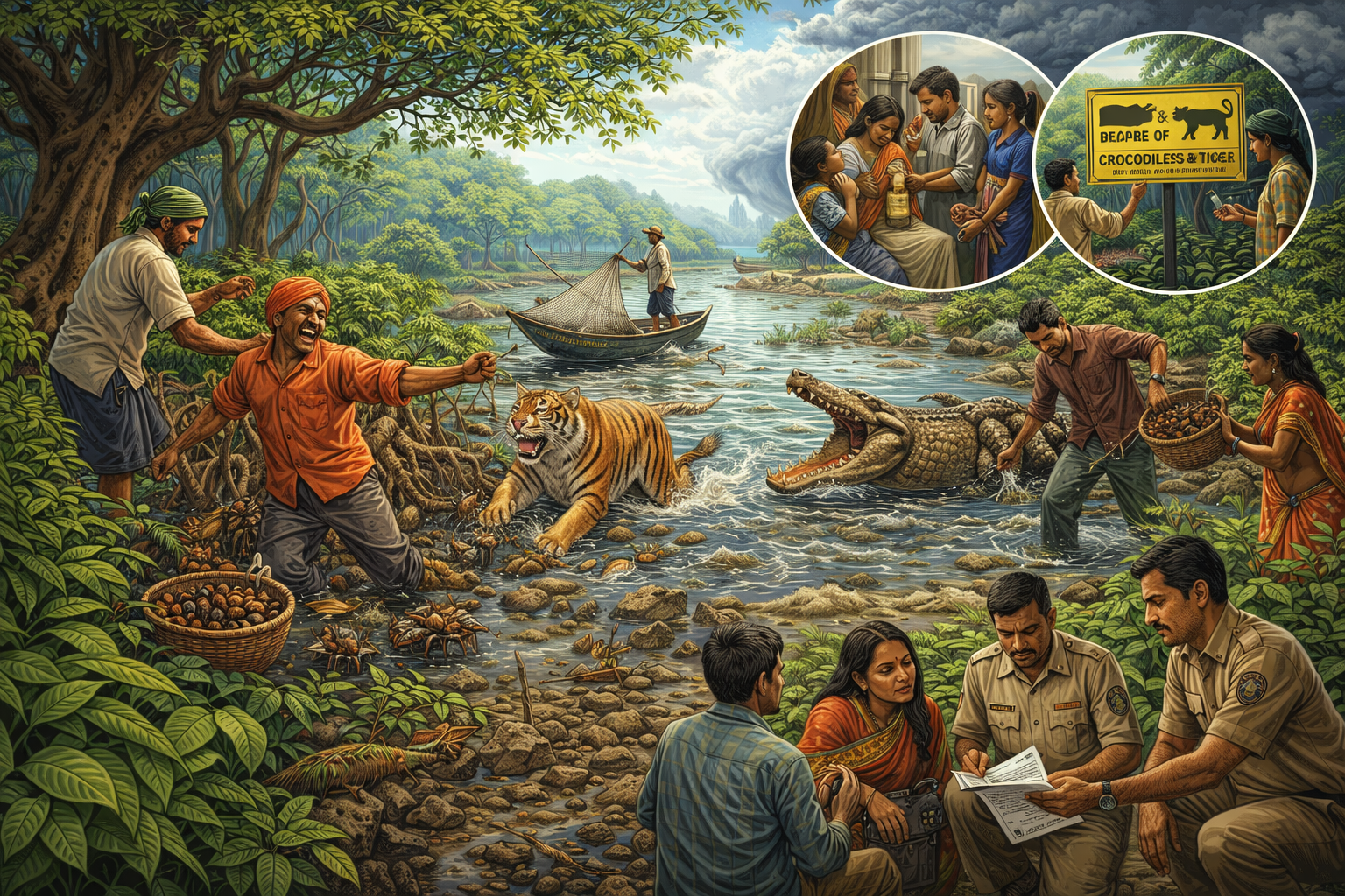 In the Sundarbans, human–wildlife conflict is a constant livelihood risk, not a rare incident. People who fish, collect crabs, cut wood legally, or gather honey often work in the same creeks and mangrove corridors used by tigers and estuarine crocodiles. Climate shocks, shrinking local livelihoods, and unsafe access routes increase exposure—especially for the poorest households.
